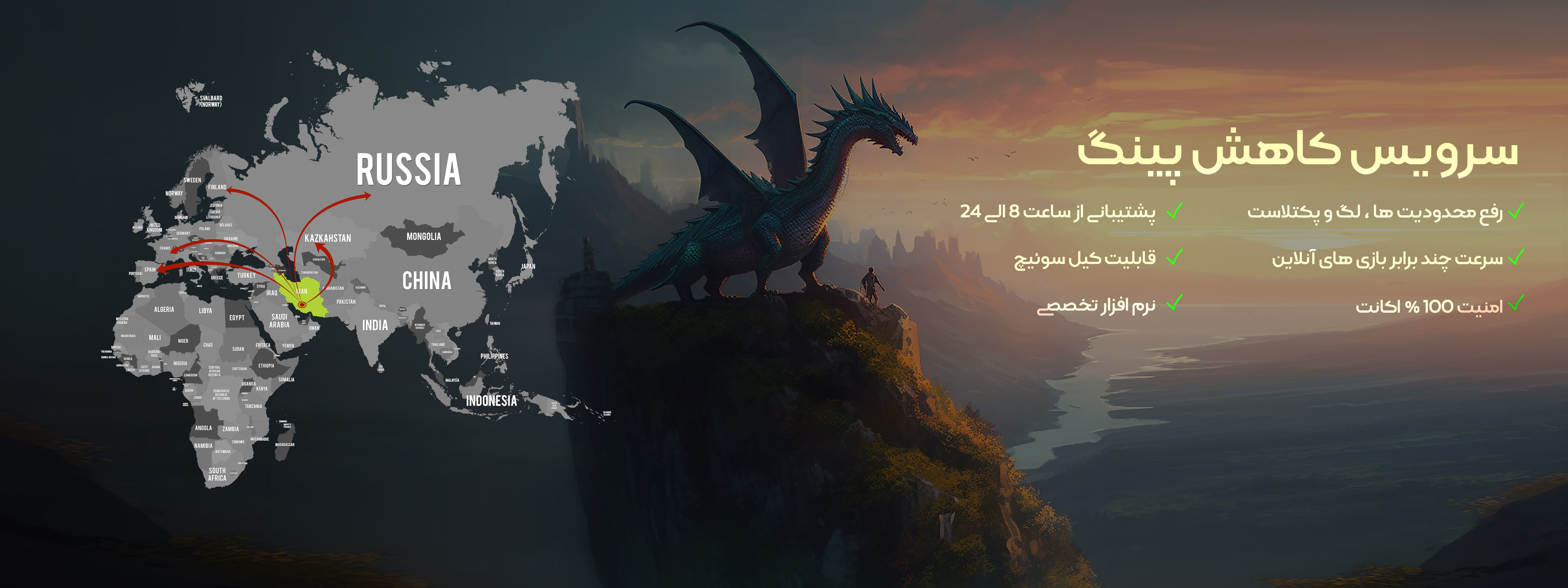 زمانی که صحبت از سرعت دانلود اینترنت میشود، تنها عامل تاثیرگذار پهنای باند سرویس اینترنت است. اما وقتی که صحبت از پینگ و کاهش پینگ بازی میشود، قضیه کمی متفاوت است؛ مهمترین عاملی که باعث کاهش پینگ سیستم شما میشود، فاصله مکانی و جغرافیایی است. دراگون با بهرهگیری از روتینگ متنوع از سراسر دنیا باعث میشود تا سرویس اینترنت شما تبدیل به نزدیکترین سرویس به سرور بازی شود. جهت آشنایی بیشتر با سرویسهای دراگون وی پی اس و آموزش کاهش پینگ روی دکمه زیر کلیک کنید.